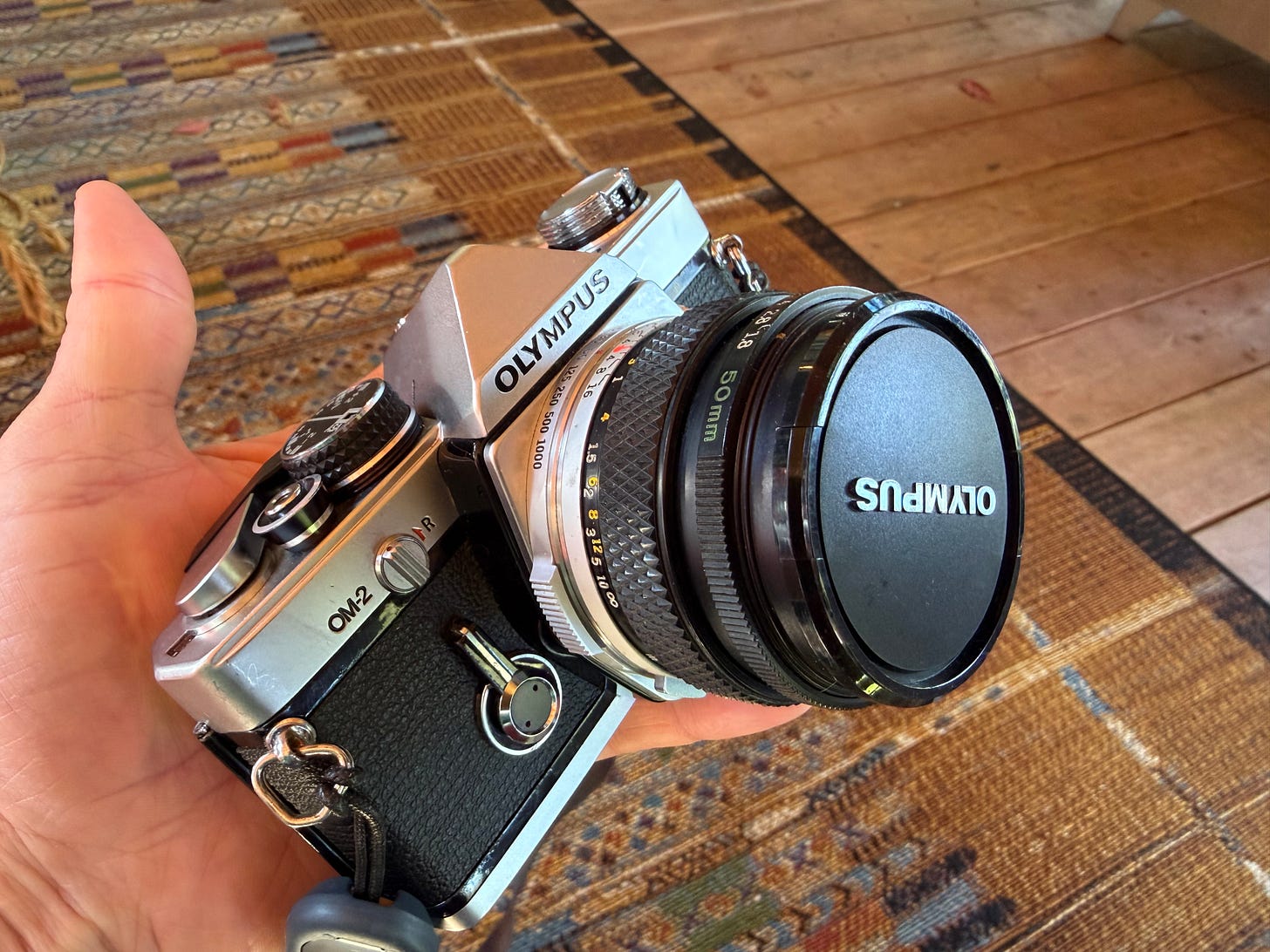 Here is an Olympus OM-2 with a 50M f/1.8. They run around $200-300 on eBay.