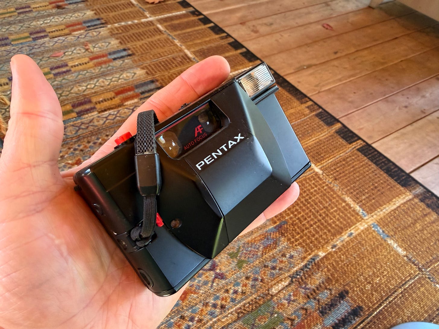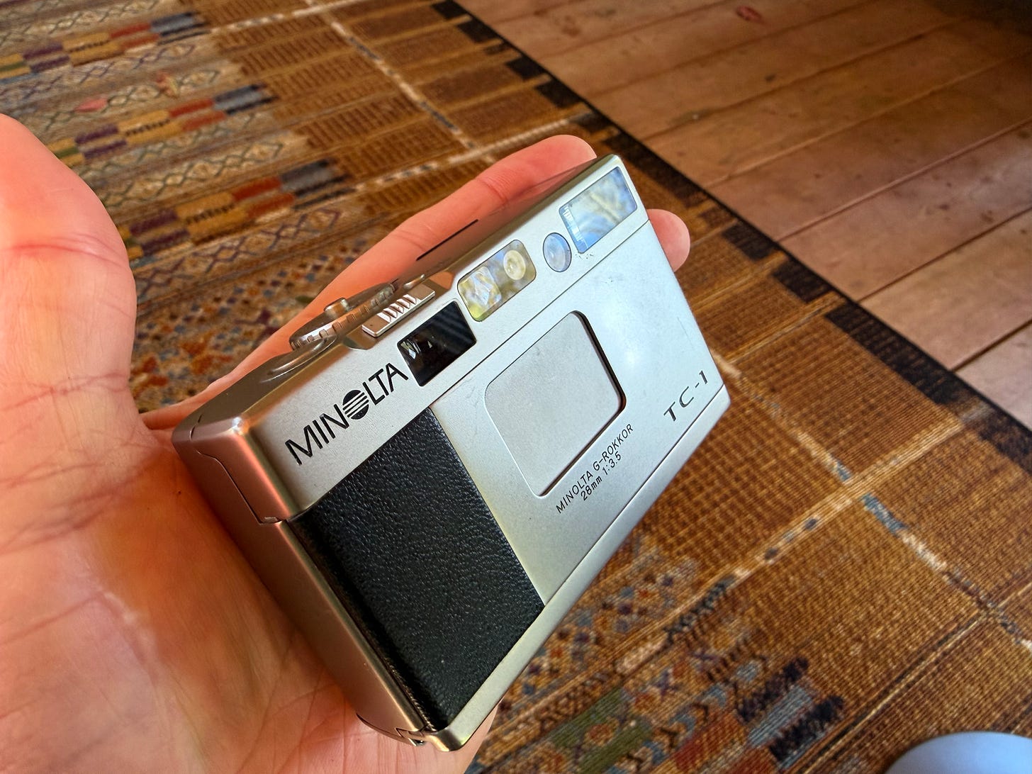 It’s teeny bit longer that the Minolta - but is thinner (and less expensive) and due to its shape seems to slide in and out of my pocket better, and the manual slide open feels a bit more robust that the beautiful magical electronic shutter on the Minolta.