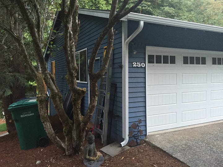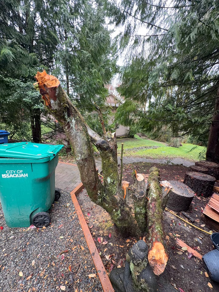 Two of those activities were splitting big Doug Fir rounds for firewood. This involved moving heavy rounds in place, splitting them with a maul and a sledge hammer and then splitting them into smaller pieces with an axe and then stacking. Another was me deciding to cut down a Japanese Spindletree that grew next to our house. The Spindletree is really a bush and it had grown 20+ feet tall and it was continually dropping leaves and I found it annoying. So I cut it down.