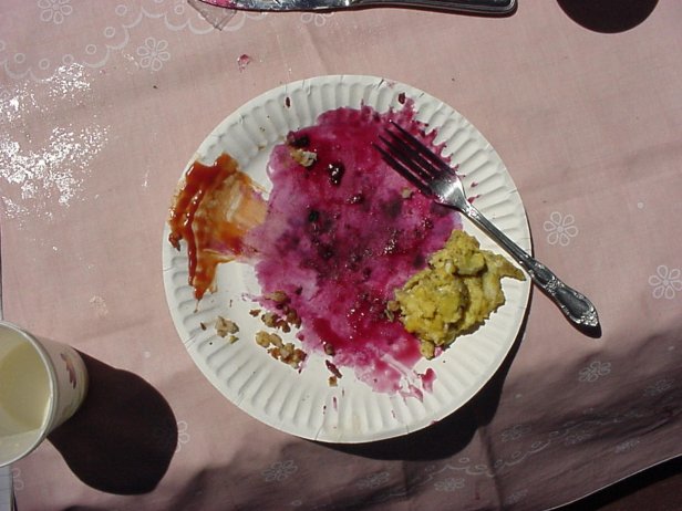 Clair's breakfasts were yummy, and with huckleberry syrup you could get some interesting color combinations.