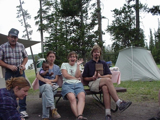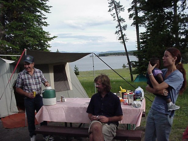Stacey and I have been coming to Yellowstone National Park since 1992, when we first visited with the Zollinger's, Kiah was 4 months old. Since then we have visited half a dozen times. 2000 looks like it was the last of Yellowstone Zollinger trips. In 2001 the park stopped letting you take trout from Yellowstone Lake and hence killed the main reason Clair Zollinger likes to go. Each year the Zollingers would drag their boat to the lake and spend a week camping at the lake, catching fish and eating them.