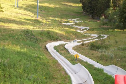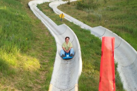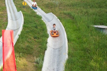 The slide was a lot of fun, you can control your speed which can vary from VERY slow to skin scraping fast. Most of the worker's there (teenagers) had a very visible scab from riding too fast.