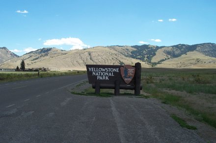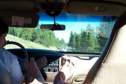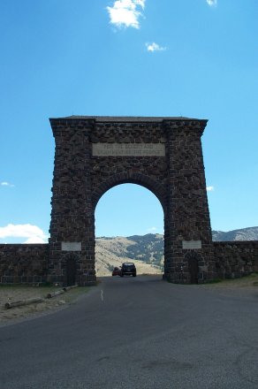 One of the reasons that we cut over to Bozeman is that we were heading for Logan and we wanted to drive through Yellowstone. Out of the past 7 summers we have spent 4 of them in Yellowstone, camping with the Zollingers. This year though the harvest came early and even Ron Zollinger was staying up in the back country of Yellowstone Lake, so we had to make do with a drive. We entered through the north entrace of the park, something we had never done before. This was the original entrance to the park, so there is an impressive arch.