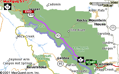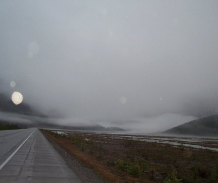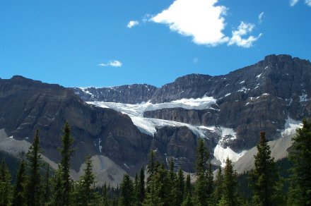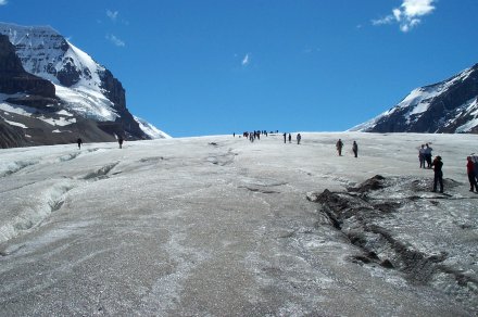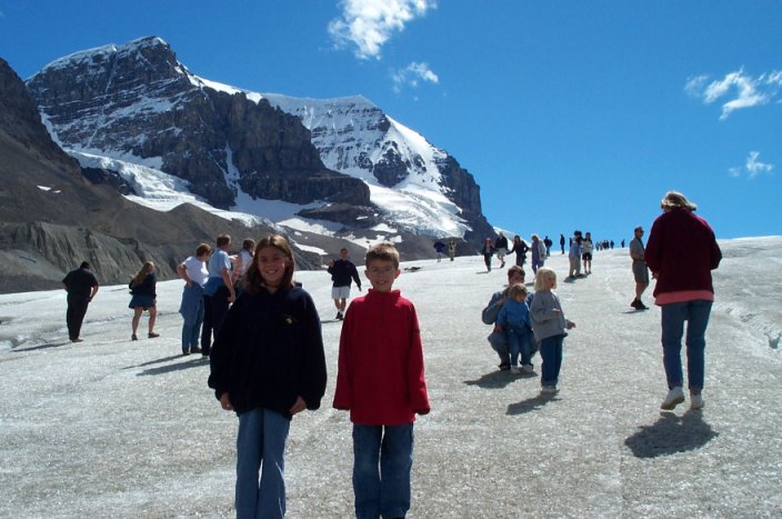 You can actually stop at the Athabasca Glacier and take a short hike to the "toe" of the glacier. There are signs warning you all the way up and when you arrive NOT to hike up on the glacier. As it melts it leaves unseen crevaces that people fall into and usually die of hypo-thermia prior to rescue. The most recent death was on July 4th 2001, less than 2 weeks prior, so we went up only about 20 feet for photos.