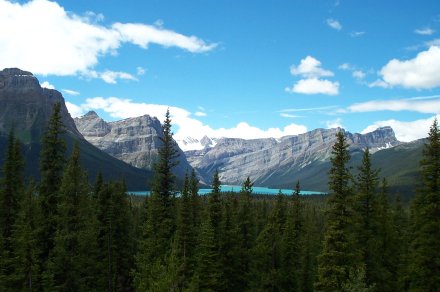 Then we got back in the car and kept heading up to Jasper. Along the way there are several of the most gorgeously colored lakes. Here is a couple of pictures of Hector Lake.