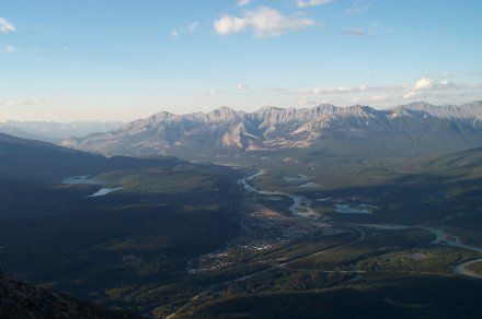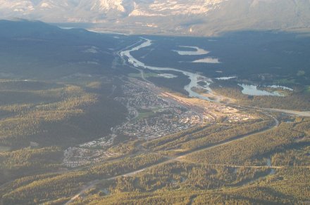 This is the town of jasper, the two lakes in the left are Patricia and Pyramid lake where we stayed.