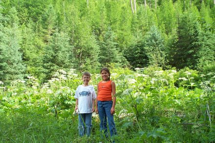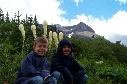 Kiah, David and I set off on an hike. Behind them is "Bear Grass", which bears don't eat but the deer and goats do.