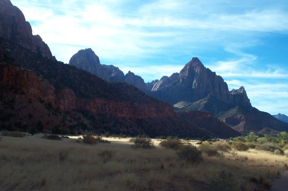 This is paved trail, whose name is Paiute meaning "bubbling, tumbling water." This runs parallel to the road, although not adjacent. Like the road, the trail runs along the Virgin river, however it is on the opposite side that the road runs on, so you don't get a lot of road noise. The trail runs 2 miles from the visitor center to the point where the road splits between the East entrance and the Narrows. Along the way there are some beautiful views:
