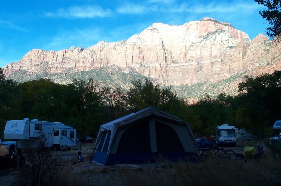 After November 1st, Zion's and the surrounding area slows down, the shuttle no longer runs, only a single campsite is open (there are two South and Watchman campground) and they no longer take reservations. We stayed in loop B of the Watchman campground and pitched our small tent.