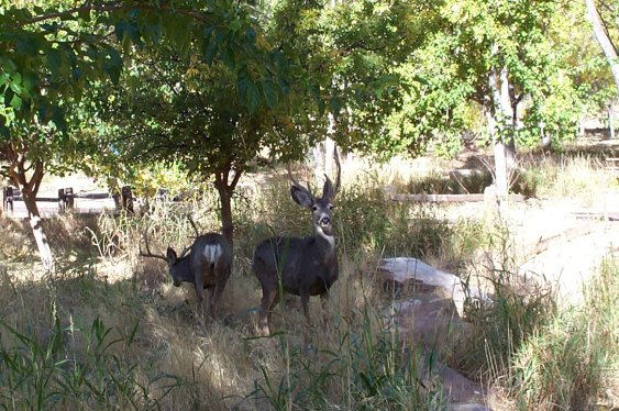 While riding through the empty South campground there were deer feeding on the tree leaves: