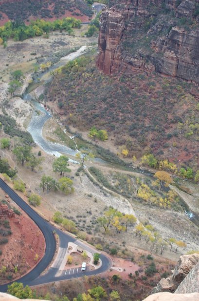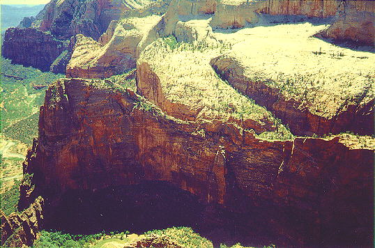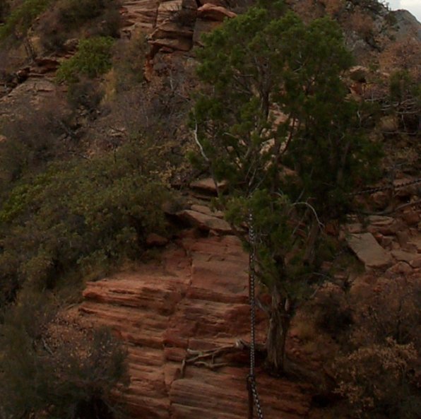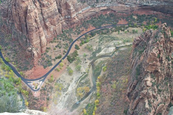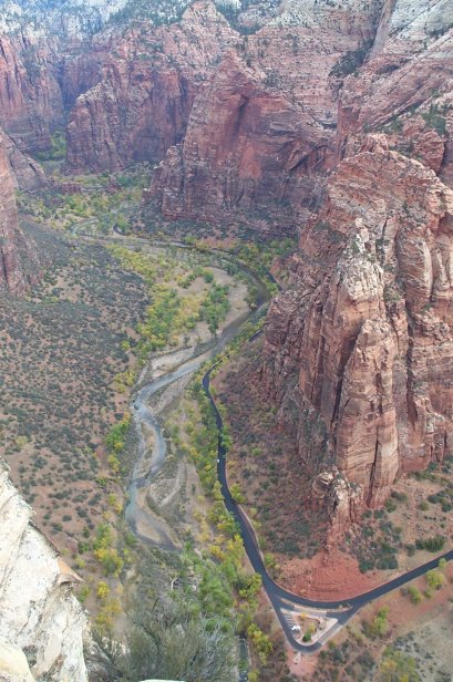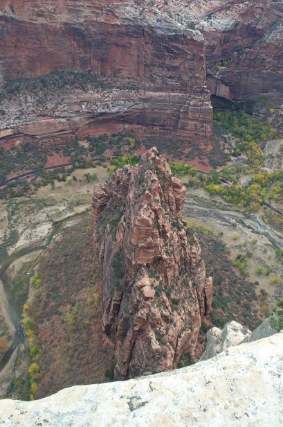 This is the tail end of the fin looking down from the top of Angel's Landing.