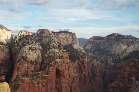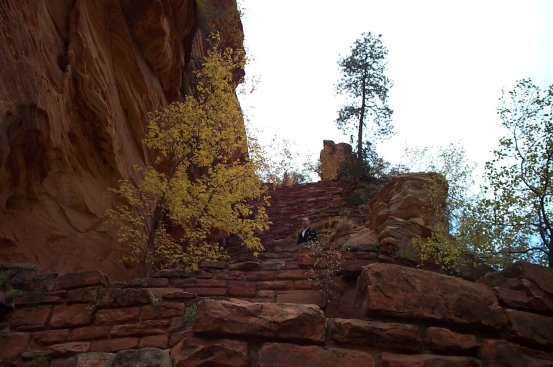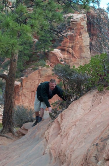 Sunday Paul and I got up at 6 am to go for a hike. The moon was up 2 days past full, the Sun not yet quite up. We drove up the Narrow's section of the canyon and parked at the Grotto. There was only one other car in the parking lot. We headed for Angel's Landing, which turned out to be an amazing hike.