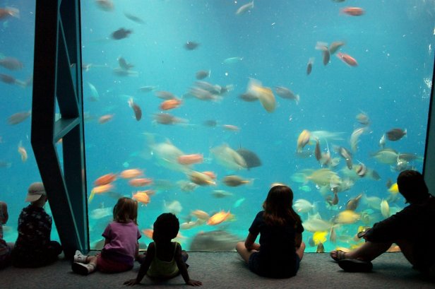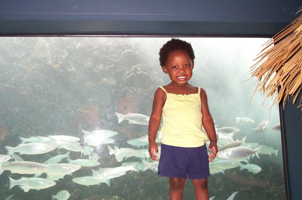 The big ocean aquarium was coo, Sofi and Kiah watched a diver feed the fish.