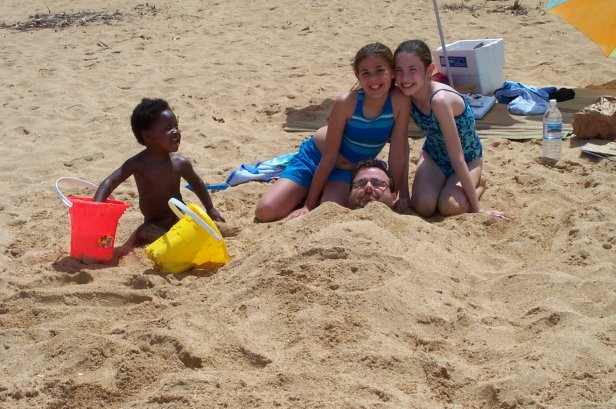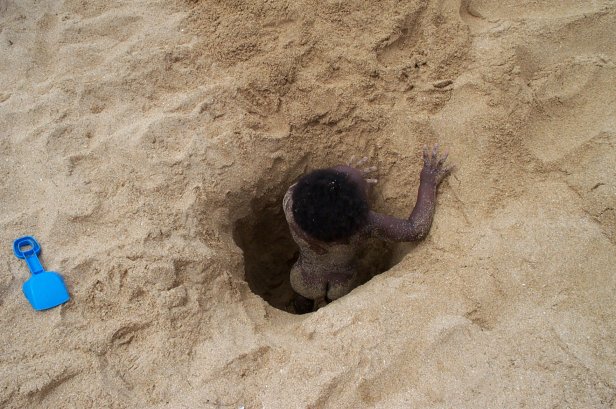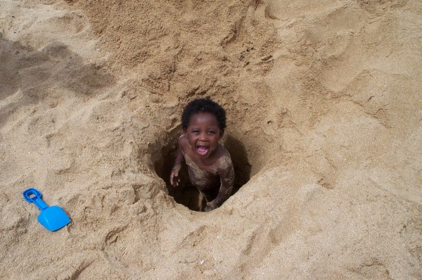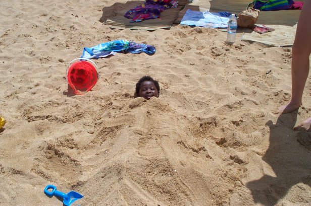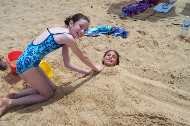 She also liked it when we dug a hole straight down in the sand and buried here.