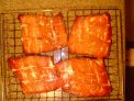Copper River Salmon is avaliable in May and I bought about 15 lbs at Costco for $6.99 a pound. We grilled and ate several sides. I recently purchased a Bradley Smoker to do cold smoking. I decided to smoke the rest, I followed the recipe and procedure on Salmon Universities website. I put them in the smoker at 10 pm and woke up at 4 am to check on them.