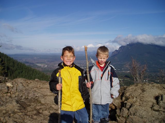 Adam Call and Tanner Chandler on top of Rattlesnake Ledge with Mt. Si in the background.