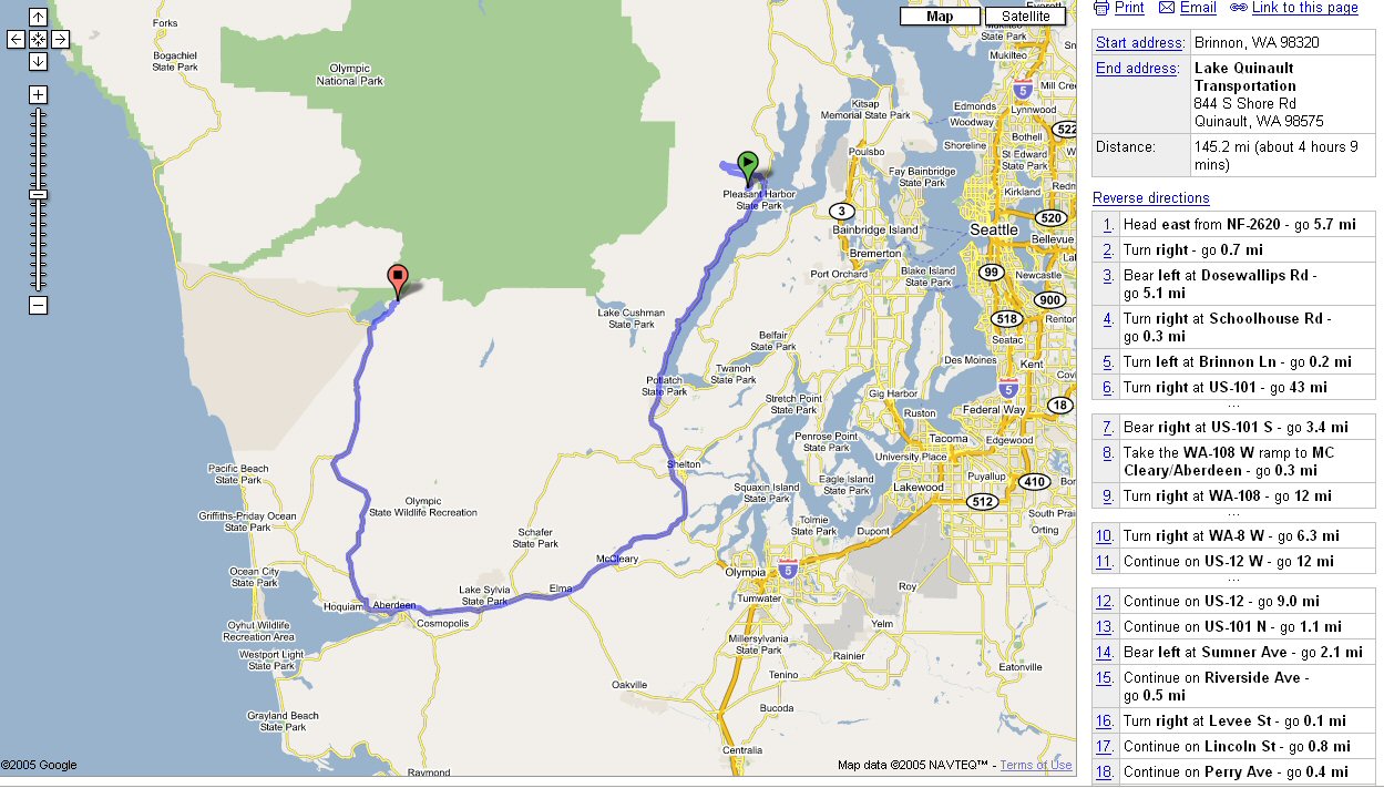 From drop off to Lake Quinault 145 miles, Take the South Shore road, follow to the end where you reach Graves Creek campground and Graves Creek trailhead.