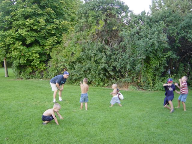 The kids had a grass fight with Aaron Chandler.