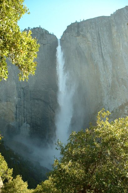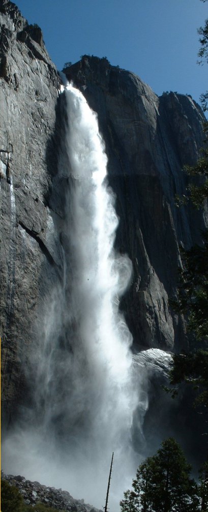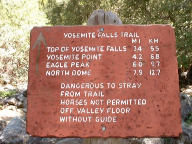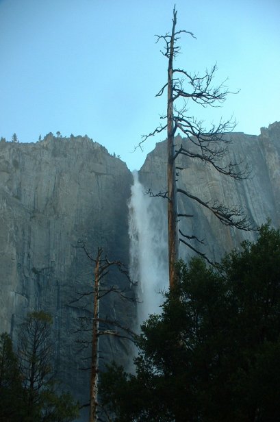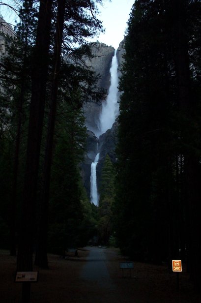 Sunday was Mother's Day, Troy Nelson and I should have known better, BUT we decided to try to squeeze in a major hike of some sort. After attempting to convince Paul and Jim to join us and forgetting to remember Isabelle, we set off to hike to the top of Yosemite Falls. Remember I noted before the height of the falls is 2,425 feet. The hike begins at Camp 4, starting at 3990 feet and climbs to 6600 feet with an elevation gain of 2670 feet in three and a half short miles. We awoke around 5:15 AM and arrived at Camp Four around 6 AM. Here is a shot of the entire falls (not where the hike begins) at around quarter to 6, notice no one is around.