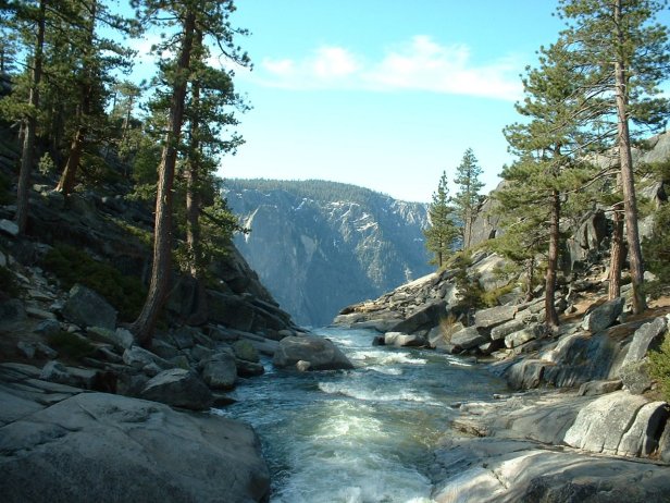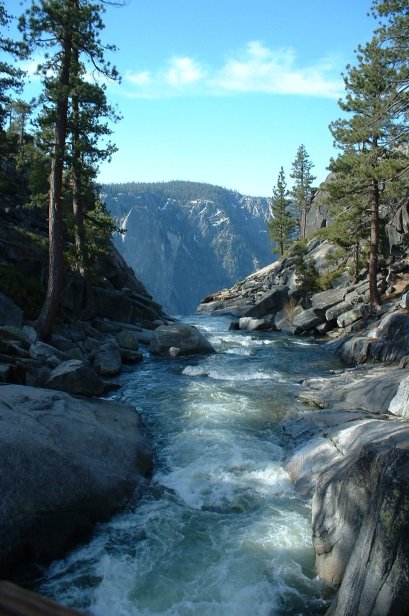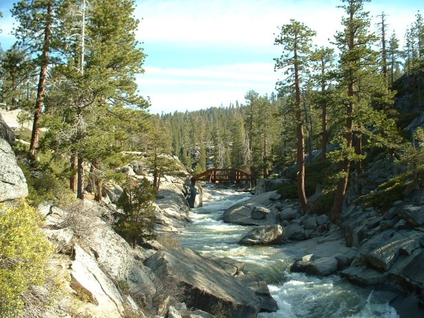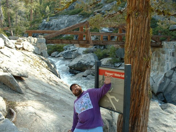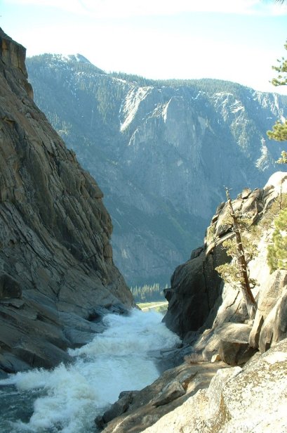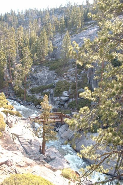 Troy and I some how missed the turn and went towards the overlook before making our own way towards the mouth of the falls. Here we look down on the bridge that crosses Yosemite Creek.