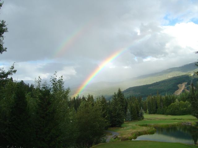 Tuesday we drove up to Whistler where we stayed for two nights in a timeshare. It rained off and on both days, so we did a lot of shopping, but there were beautiful rainbows in the afternoon when the storms broke.