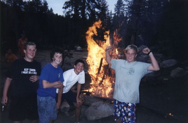 The fire roars! Dan Hogan, Chad Ellis, Ben Rudd, and Canyon Copa.