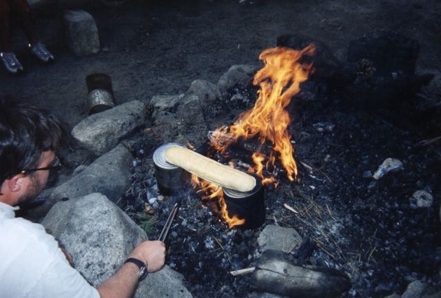 That evening we had to cook spaghetti and they gave us garlic bread, we rigged up some cans and cooked it over the fire.