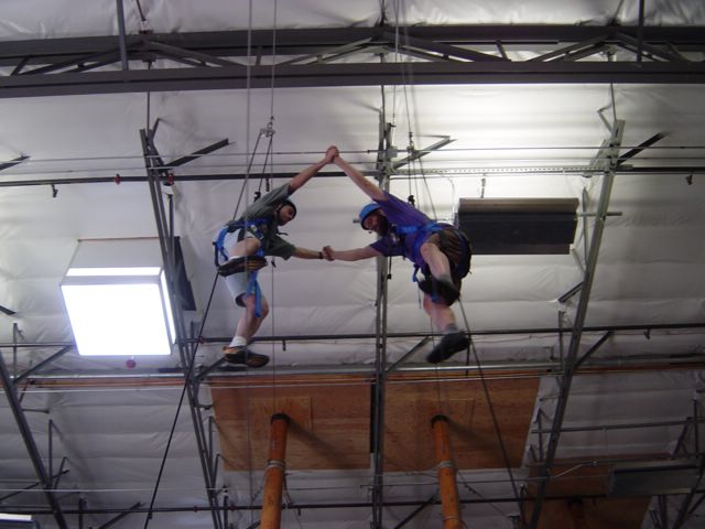 They tell you keep your but in and lean in more, but its hard to remember when your up there oscillating on the wires.