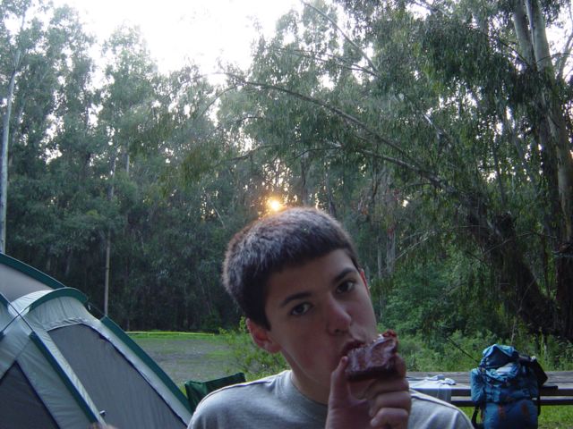 Sunset and Ben Rudd's head with brownie