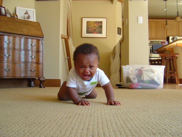 Miles has been crawling crawling (as opposed to commando crawing) for about 10 days or so. I tried to get pictures of him crawling, but he was very tired and so he cried and crawled.